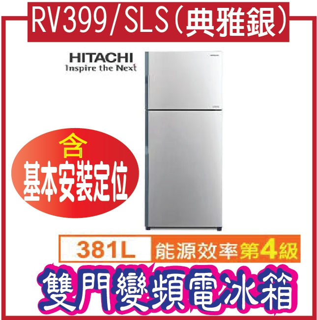 HITACHI 日立381L雙門變頻電冰箱RV399/SLS(典雅銀) 68348加碼送【基本安裝定位】HITACHI 日立381L雙門變頻電冰箱RV399/SLS(典雅銀) 17,999