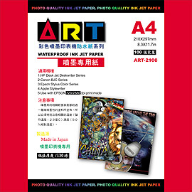 ART-2100 33105(日系) ART 高彩高白度~噴墨防水紙 130 磅系列 ( 720~5760 DPI ) ART-2100 防水噴墨專用紙 A4 / 130 磅 100張 / 包 229