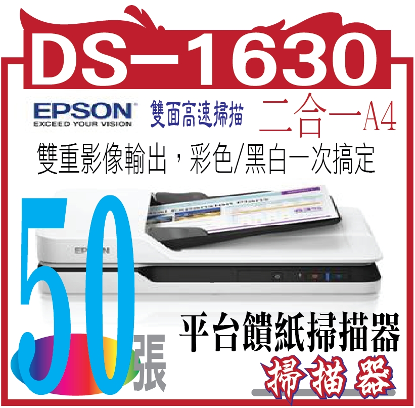EPSON DS-1630 二合一A4平台饋紙掃描器 65617EPSON DS-1630 二合一A4平台饋紙掃描器 17,888