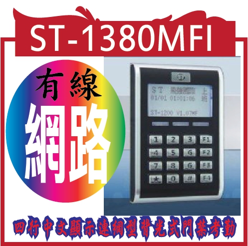 ST-1380MFI 69428ST-1380MFI四行中文顯示連網型背光式門禁考勤讀卡機升級(含軟體)(人數16000, 鬧鈴, 自動班別,日期起迄)+有線網路 6800599912,988