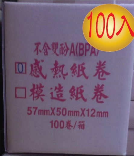 :POS熱感應紙捲-->收銀機紙捲用 57*50*12 每箱100卷 x 超值組合商品查詢代碼:QK40513