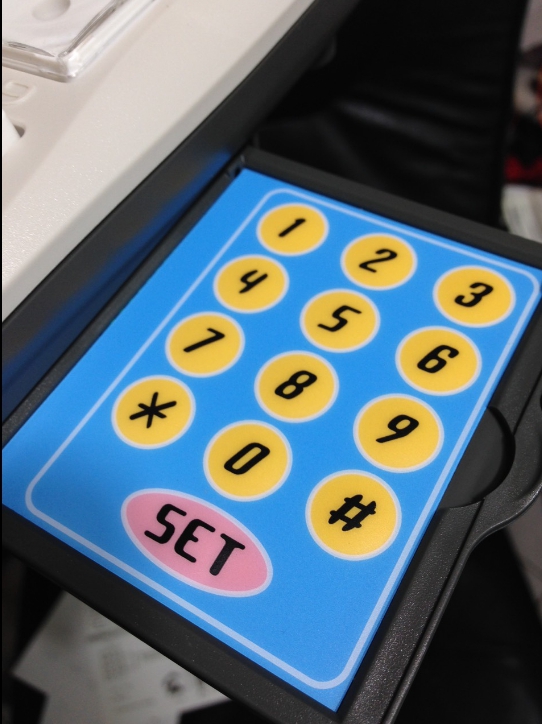 的幼童,底部附有隱藏式設定按鍵盤,可用來設定記憶號碼,也可用來撥號,不使用時可收回,不怕記憶內容被誤觸更改。
