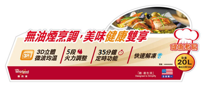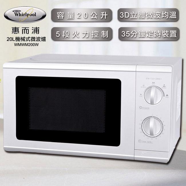 【Whirlpool惠而浦】20L機械式微波爐 WMWM200W已到貨Whirlpool惠而浦 20L機械式微波爐 WMWM200W