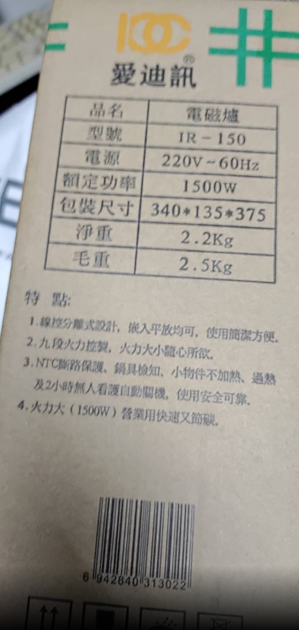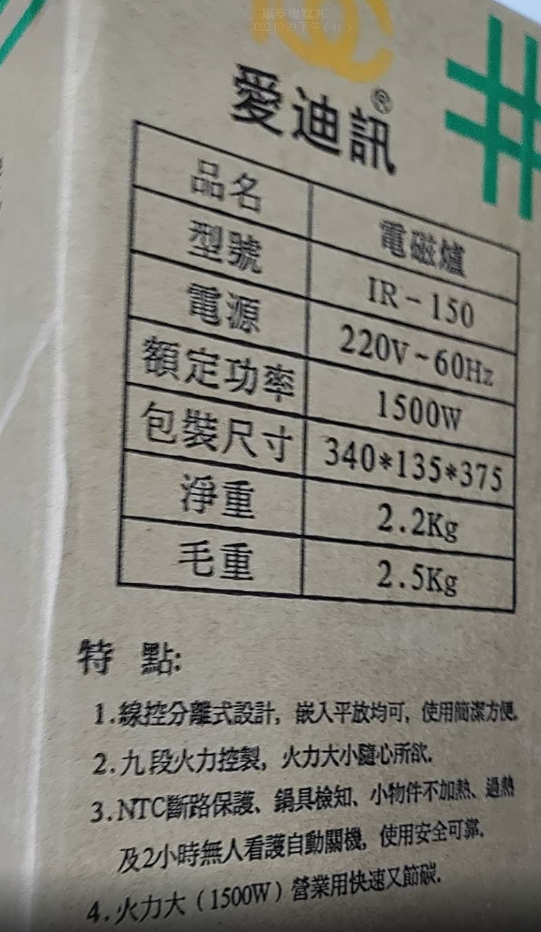 愛迪訊 電磁爐 IR-150