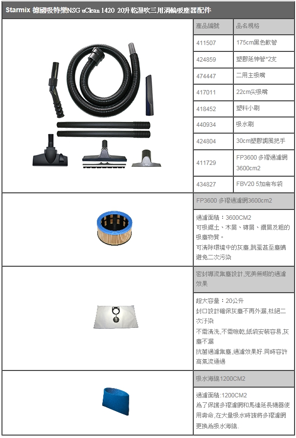 : Starmix 德國吸特樂 NSG uClean 1420 20升乾濕吹三用渦輪吸塵器 替代NTS-1220