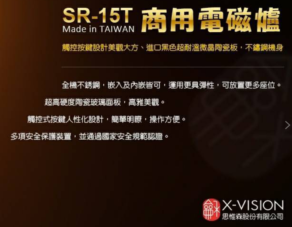 :電磁爐-->尚龢堂觸控電磁爐220V/SR-15T(1500W)火鍋店專用嵌入式電磁爐 台灣公司貨保固一年商品查詢代碼:QK79018