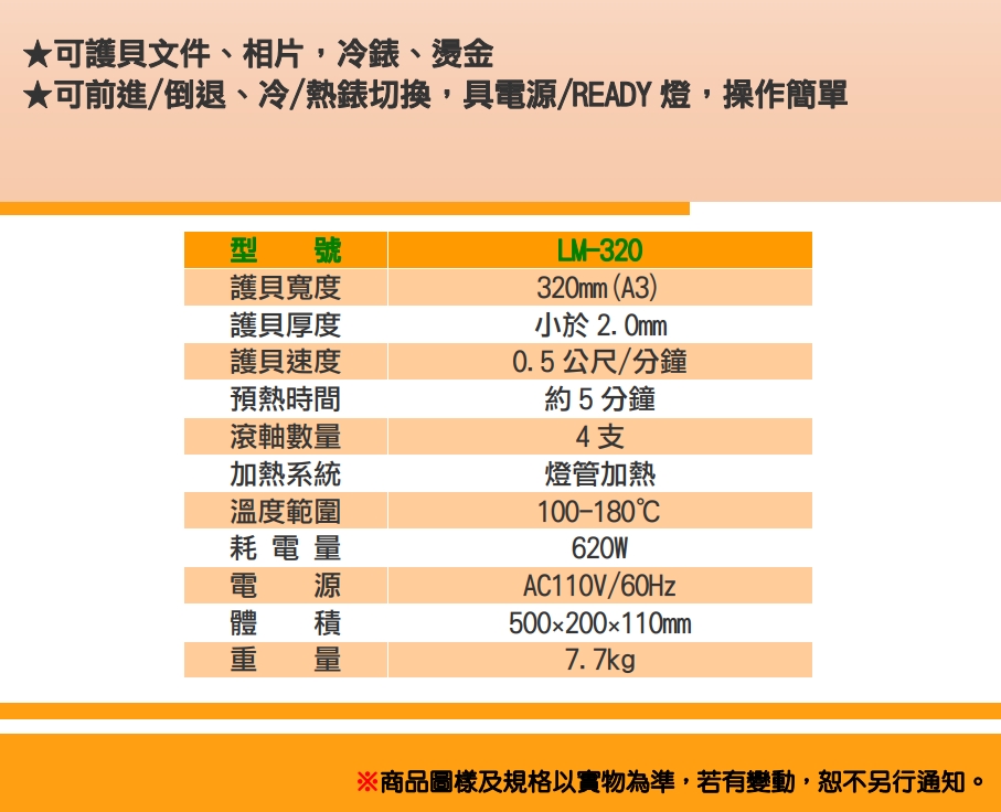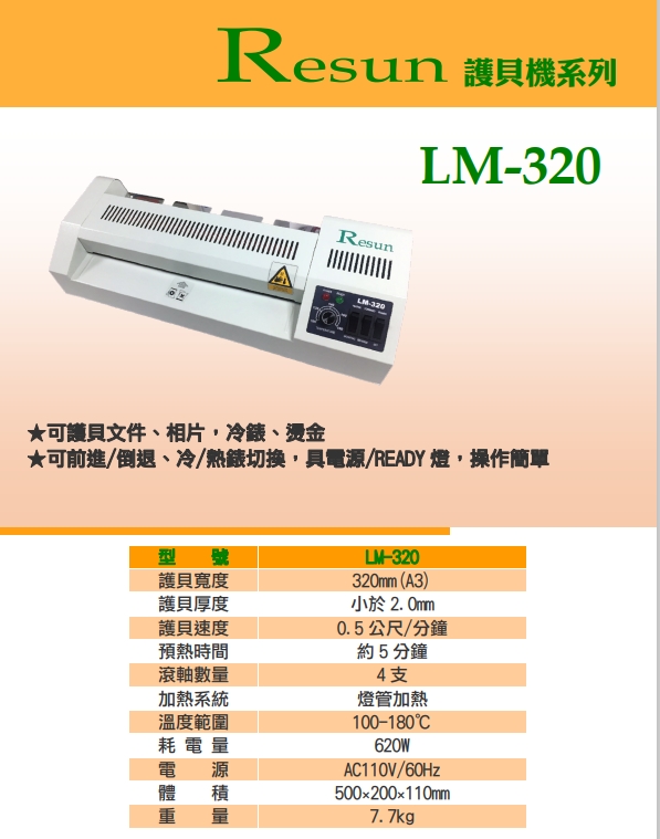 :專業型護貝機-->LM-320商品查詢代碼:QK81314