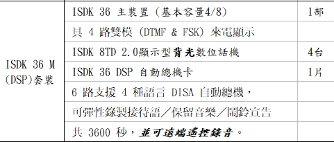 ISDK 36 M (DSP)套裝 ISDK 36 主裝置 (基本容量4/8) 1部