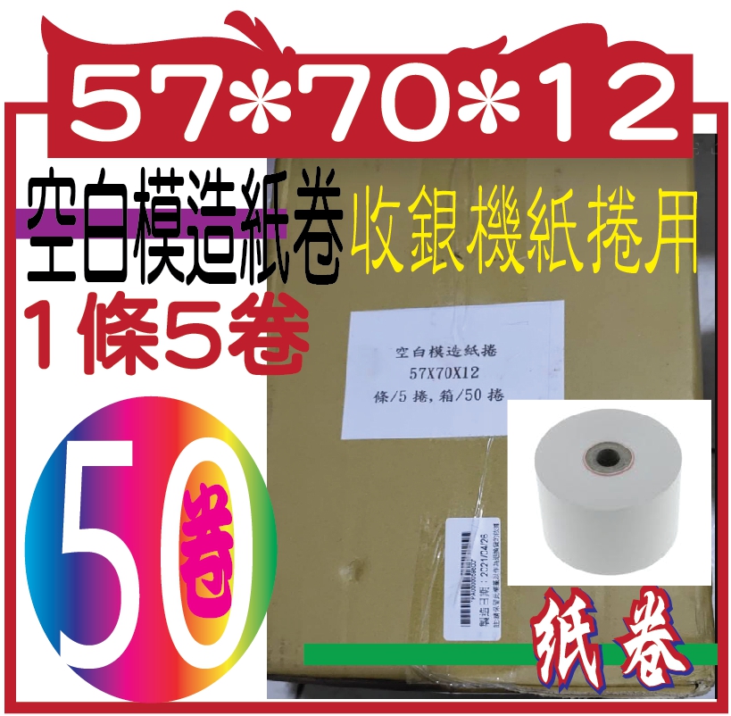 收銀機紙捲用57*7050件超值組合 好朋友分享匯款價 79158空白模造紙卷收銀機紙捲用.... 57*70*12@50件超值組合 好朋友分享匯款價 1,150