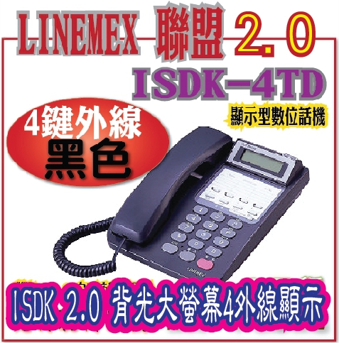 | LINEMEX 聯盟 ISDK-4TD2.0###黑色## ## 4外線顯示型數位話機. 一年保固。 | 67619 | LINEMEX 聯盟 ISDK-4TD2.0###黑色## ## 4外線顯示型數位話機. 一年保固。 ISDK 2.0 背光大螢幕4外線顯示型數位話機. 一年保固。 | | 2,498 | | 867 | 現貨供應 |