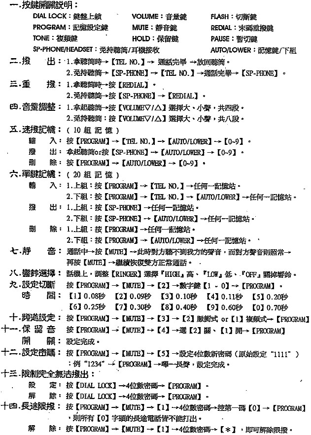 SP\耳機孔/長控/20組記憶\LCD顯示\自動重撥15次