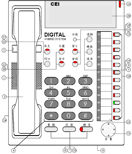 12.會談鍵及燈:啟動會談功能,會談時燈號直亮。
