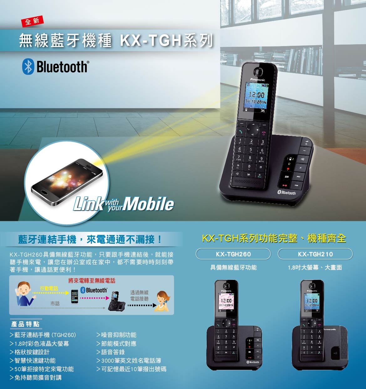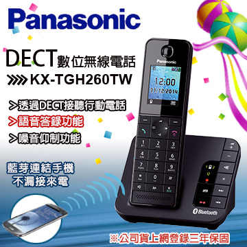 專案限量配對藍芽耳機☞Panasonic DECT 數位答錄大字鍵無線電話 TGH-260 Panasonic 國際牌DECT無線電話(藍芽) KX-TGH260 TW【公司貨】.