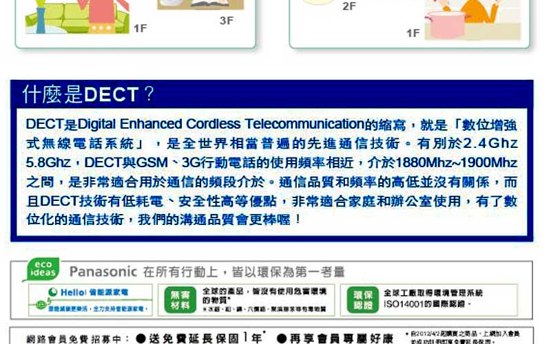 DECT 數位答錄大字鍵無線電話 KX-TGE210升級旗鑑款產品特色