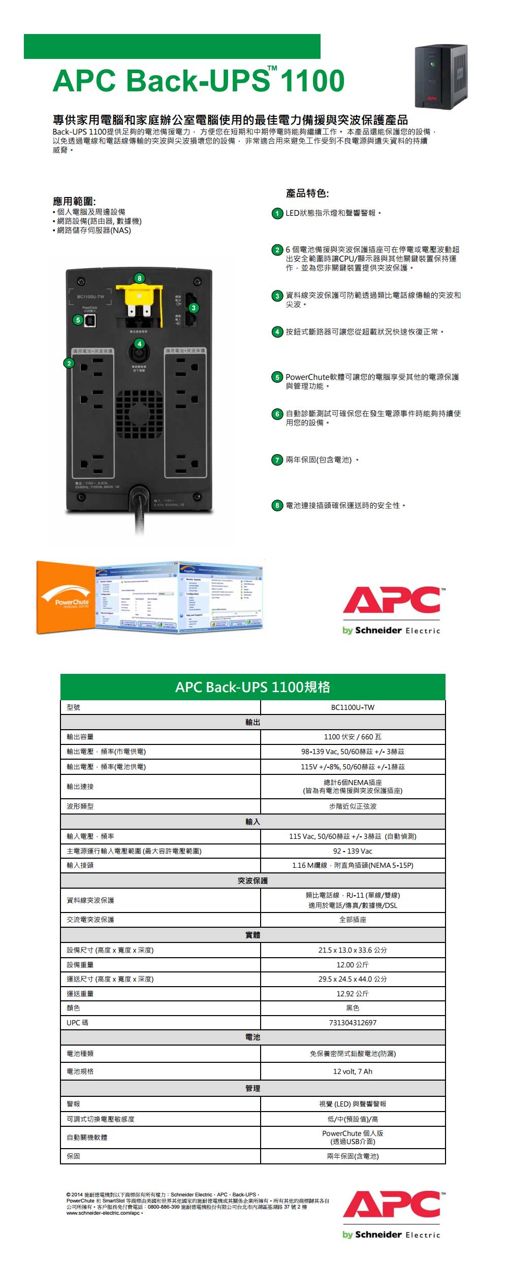 專案限量APC BC1100U-TW