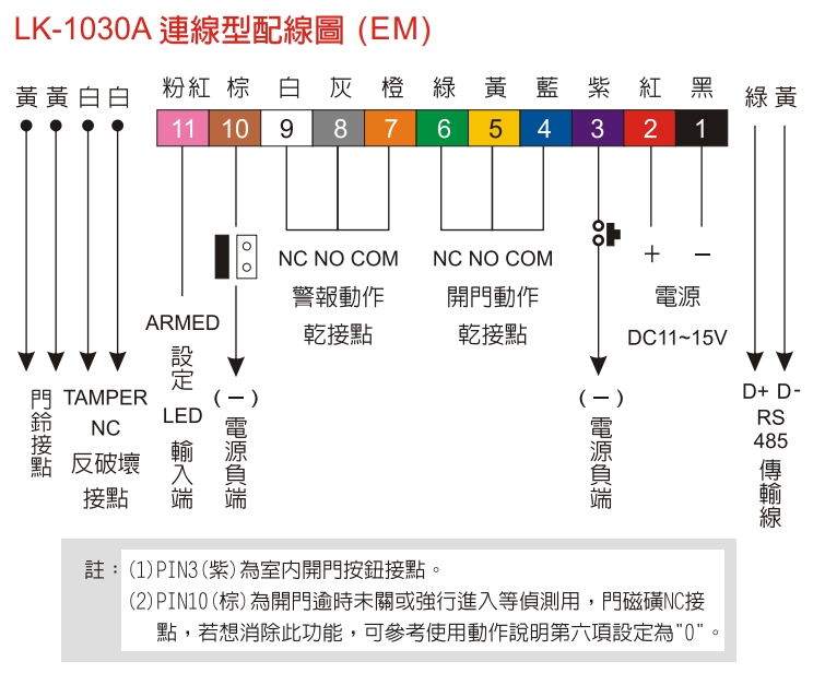五次誤碼輸入等警報接點輸出。