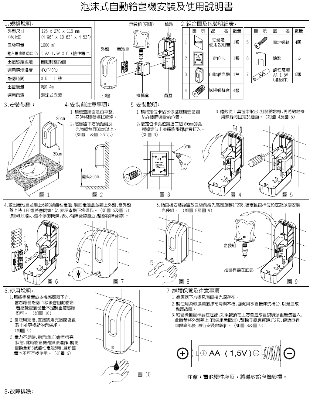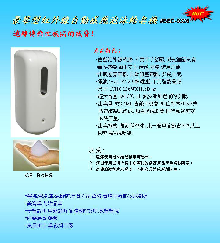 泡沫式給皂機SSD-9326特點(優點)說明 |