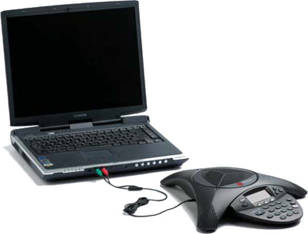 可進行網路電話及視訊的多方通話會議。一般電腦用麥克風不是專為多方通話會議模式所設計的,不利於多方通話使用。透過 Computer Calling Kit 和SoundStation2* 或 SoundStation2W的2.5mm的插孔連接,就可以達到多方通話的絕佳效果。