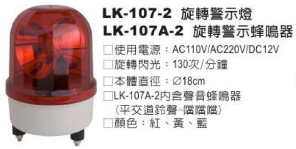 : 旋轉警示燈-->LK-107-2 旋轉警示燈商品查詢代碼:QK38087