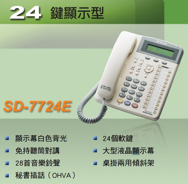 專案限量東訊SD-7724EX(24鍵豪華型數位話機)SD-7724E TECOM 24鍵免持對講顯示型功能話機