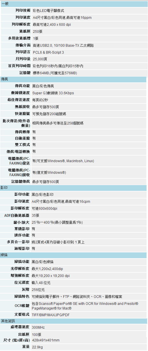 專案限量Brother MFC-9120CN 4合1彩色網路雷射複合機★集列印、影印、掃描、傳真於一機,讓您處理辦公室事務,輕鬆省時不費力☞每分鐘16頁列印速度,是彩色複合機入門機種劃時代規格