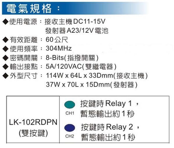 遙控開關-->LK-102RDP商品查詢代碼:QK46127