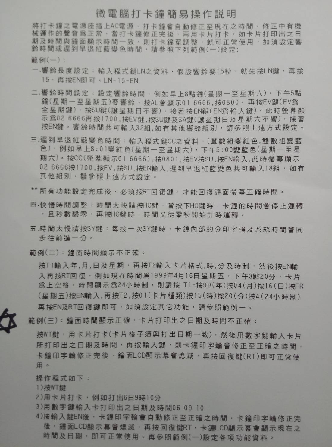 微電腦機械式打卡鐘。