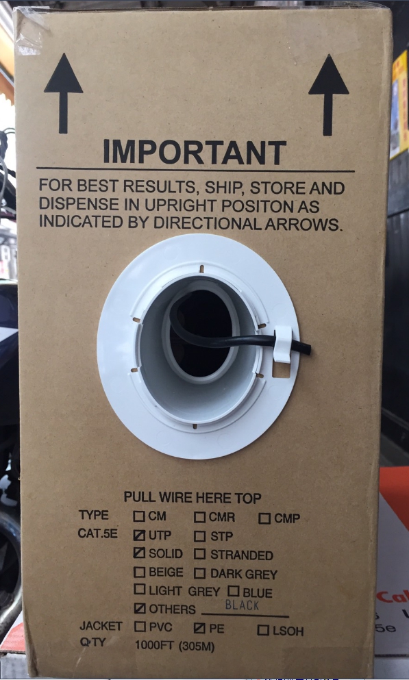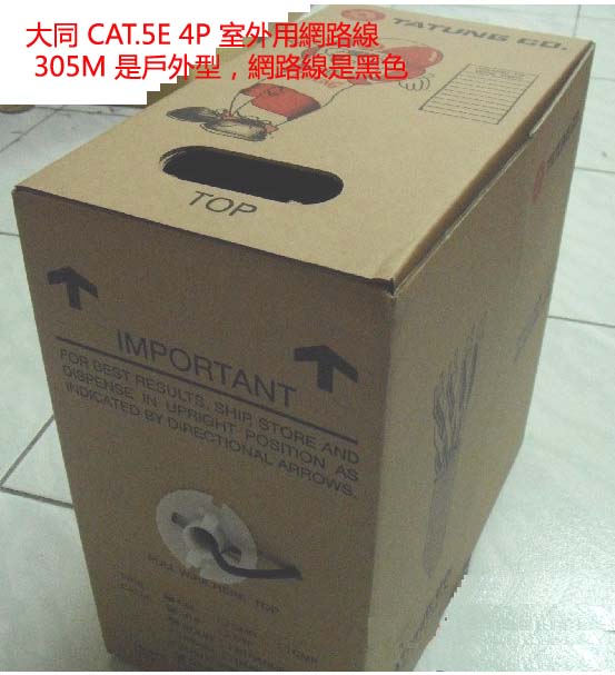 專案限量大同 CAT.5E 4P 室外用網路線 305M(無自持鋼線) 是戶外型,網路線是黑色(箱裝)
