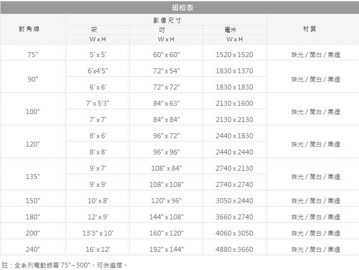 投影銀幕VERTEX 100吋 軸心電動式布幕(蓆白) ( VW-100BW )