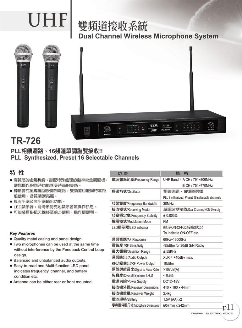 TEV 台灣電音 無線麥克風TR-726