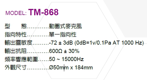 有線麥克風-->TM-868商品查詢代碼:QK50313