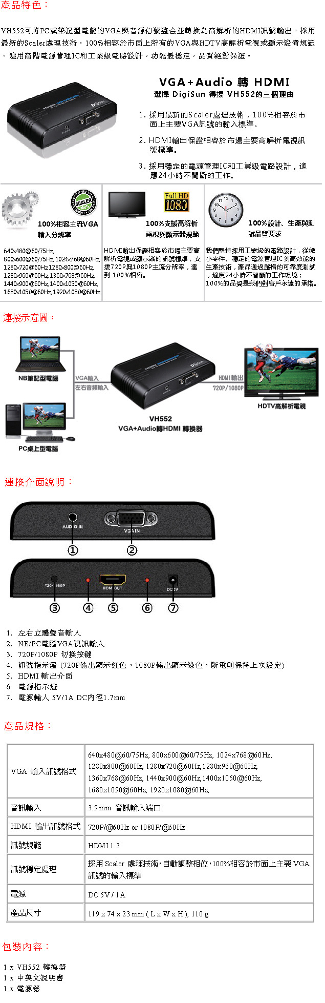 型號:VH552 VGA+Audio