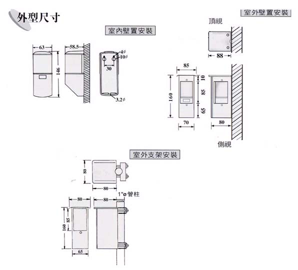 * 室內外用(適於壁置或支架安裝)