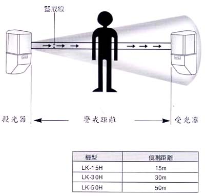 * 偵測距離15公尺(LK-15H),30公尺(LK-30H),