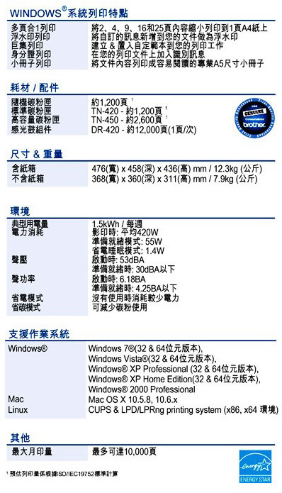 ◇採環保分離式碳粉、滾筒組 ,耗材最省。