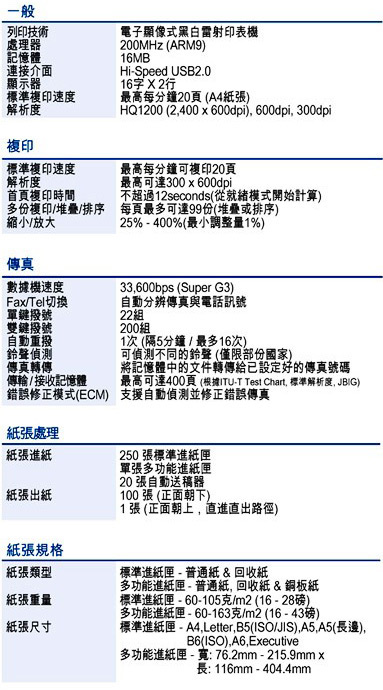 ◇1200*600dpi 列印品質、8MB記憶/15PPM列印速度&250張前置式大容量紙匣 。