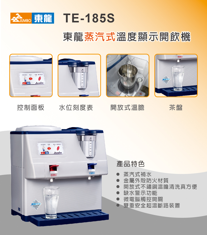 專案限量東龍蒸汽式溫熱開飲機TE-185S =雙重功能超溫斷路裝置=