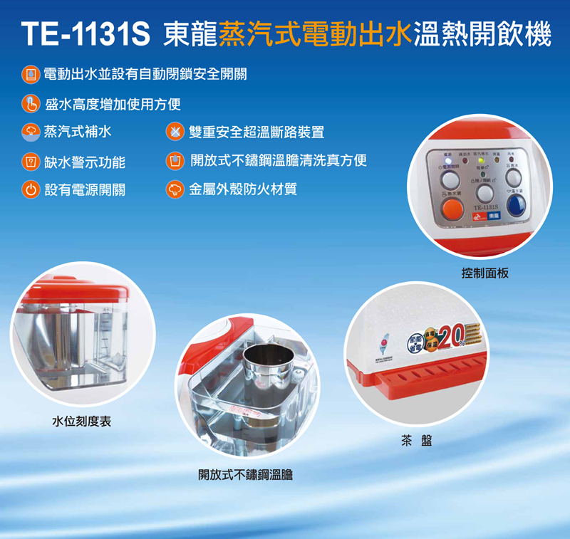 專案限量東龍蒸汽式電動出水溫熱開飲機TE-1131S ☆節能省電☆