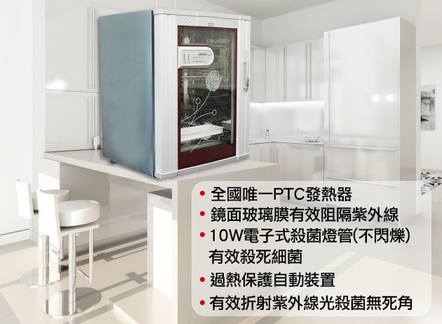 1. 微電腦數位控制易操作•門開殺菌燈自動熄滅,烘乾持續進行