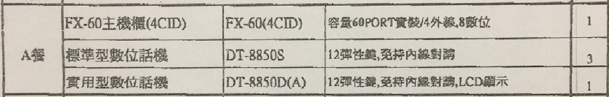 型號:A餐萬國總機系統FX-60(4CID)+1台DT-8850D(A)12鍵顯示型話機 +3台DT-8850S12鍵標準型話機