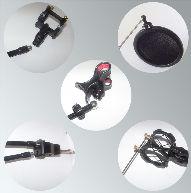 ◆金屬彎管x2、桌夾x1、防噴網x1、手機夾x1、麥克風夾x1