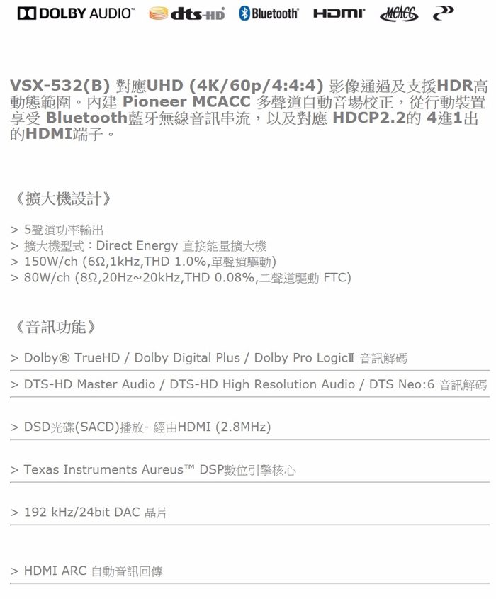 | 專案限量先鋒 Pioneer VSX-532 5.1聲道 AV 環繞擴大機 | ||||||||||||