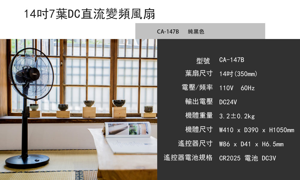 型號:DC直流變頻風扇 CA-147B(黑色)