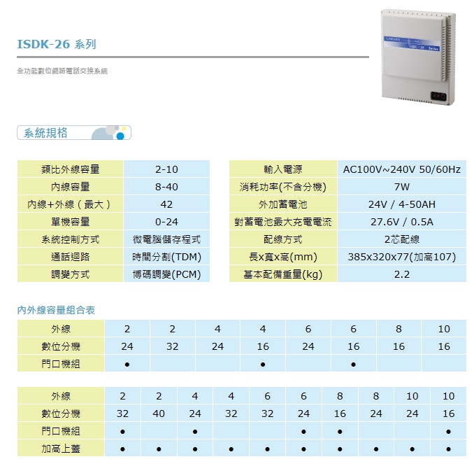 專案限量ISDK-26 主裝置 (實裝:2外線16內線4路來電顯示)