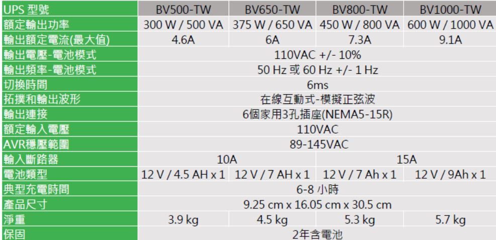 型號:APC BV500-TW 在線互動式不斷電系統