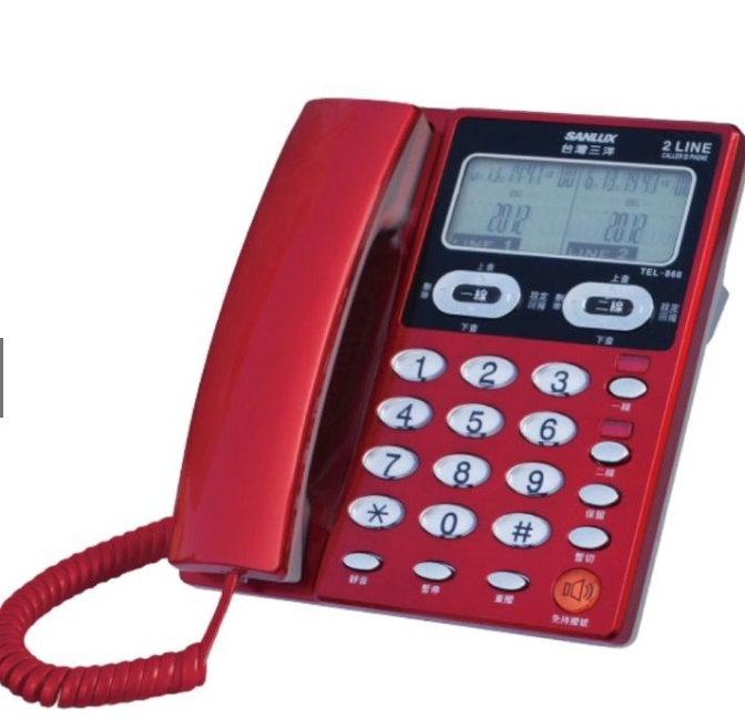 台灣三洋SANLUX 雙外線/雙螢幕來電顯示電話機 TEL-868 白色液晶螢幕 紅色夜光字鍵 99組來電查詢SANLUX 台灣三洋 雙外線有線電話機 TEL-868
