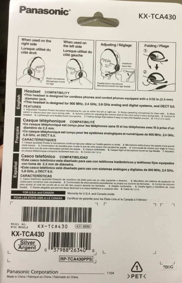 KX-TCA400◎名稱:Panasonic家用電話/無線電話頭戴式耳機麥克風 |