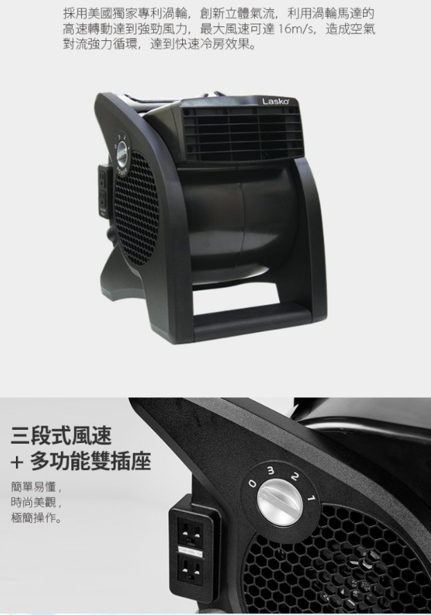 型號:LASKO 黑武士 超效能渦輪循環風扇 U15617TW