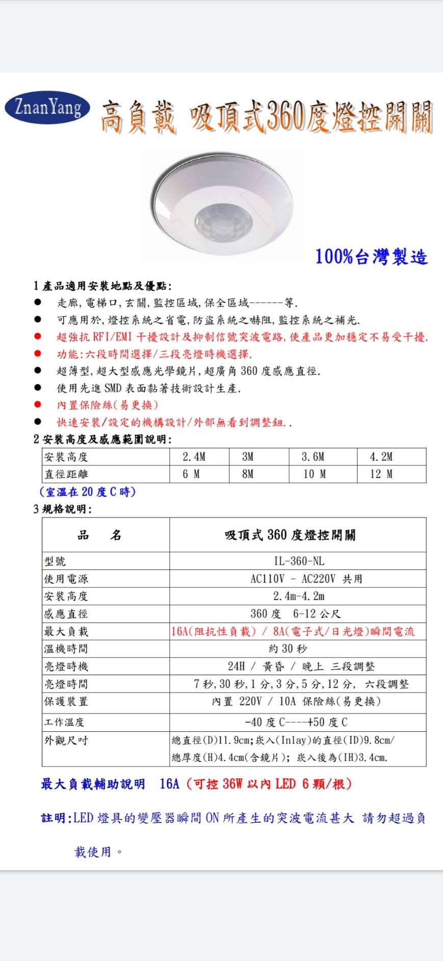 專案限量圓的 IL-360NL. 16A的 , 吸頂式感應~(大樓專用)~