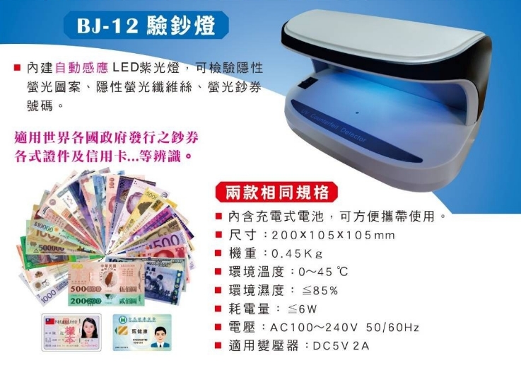BJ-12 驗鈔燈 功能介紹